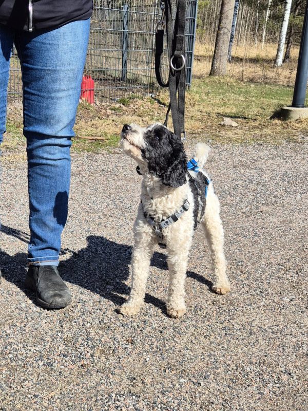 Entisessä elämässään Axl eli pelkästään terassilla käymättä lenkeillä hihnassa, joten tässä on vielä hieman opeteltavaa. Axl on jo oppinut kulkemaan hihnassa, mutta saattaa reagoida vastaantuleviin koiriin haukkumalla. Axl motivoituu hyvin herkuista, joka helpottaa kouluttamista.